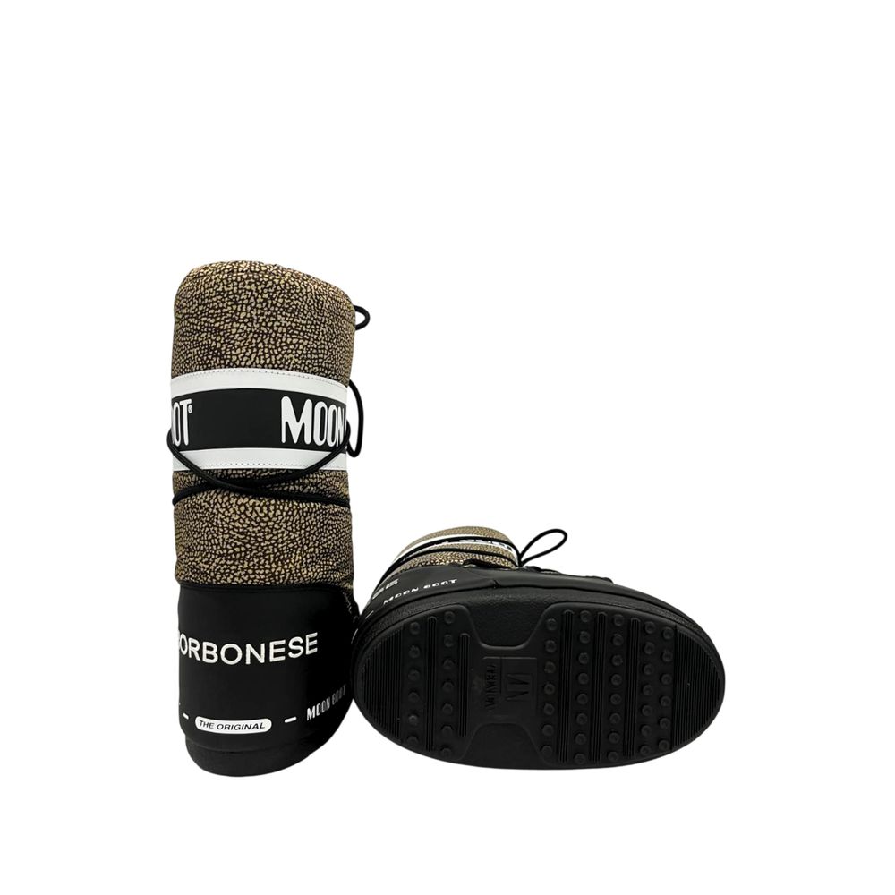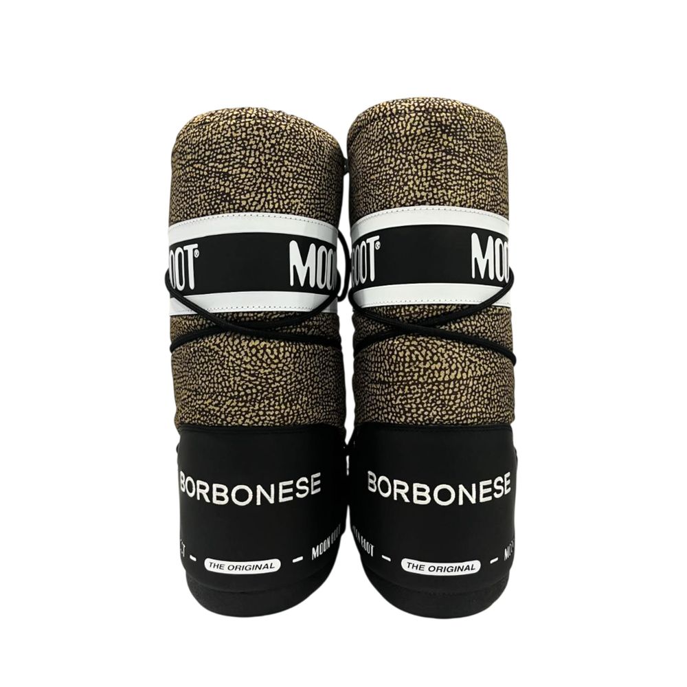 Elevate your footwear collection with the distinctive charm of Borbonese’s Padded Lace-up Boots. These beige boots feature a unique spotted design guaranteed to turn heads. The striking contrasting band adds a dash of boldness, while the iconic Borbonese logo on the back signifies luxury. Crafted with meticulous attention to detail, these boots are a testament to both style and comfort—true must-haves for the fashion-forward.