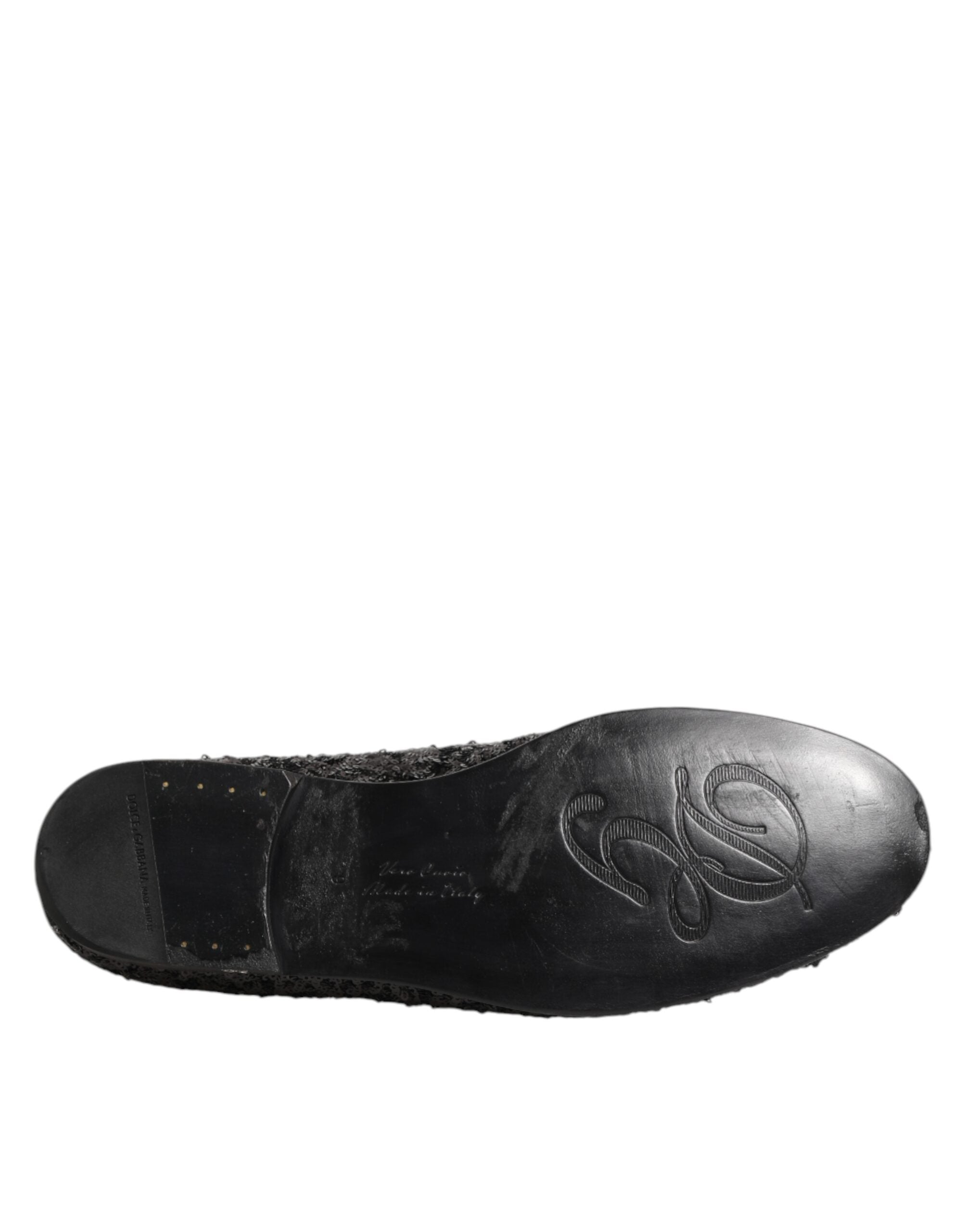 حذاء لوفرز رائع مستعمل، 100٪ أصلي من Dolce & Gabbana، مغطى بالكامل بترتر أسود لامع. يتميز بتصميم أنيق سهل الارتداء، ويوازن بين الراحة والأناقة الجريئة والملفتة للنظر — مثالي للمناسبات الرسمية، والمناسبات المسائية، أو لإضفاء لمسة مميزة على ملابسك.