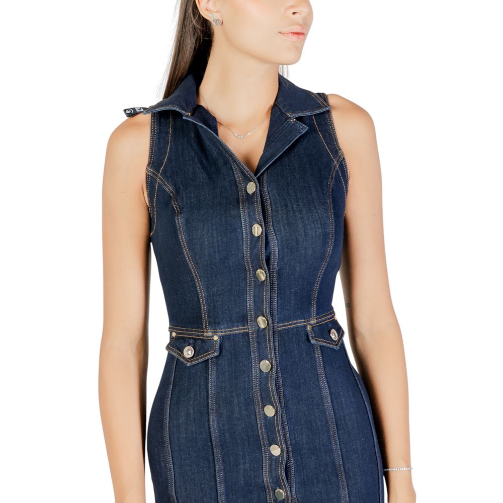 Discover the Guess Destiny Dress, a short women’s dress that combines style and comfort. Crafted from a high-quality blend of 67% cotton, 24% modal, and 9% polyester, this dress offers softness and breathability. The sleeveless design enhances the silhouette, while the front closure with metallic buttons adds a modern and practical touch. Contrasting stitching and a structured collar give character to the look, making this dress perfect for both casual occasions and evening outings. Pair it with pumps or sandals for a timeless outfit.