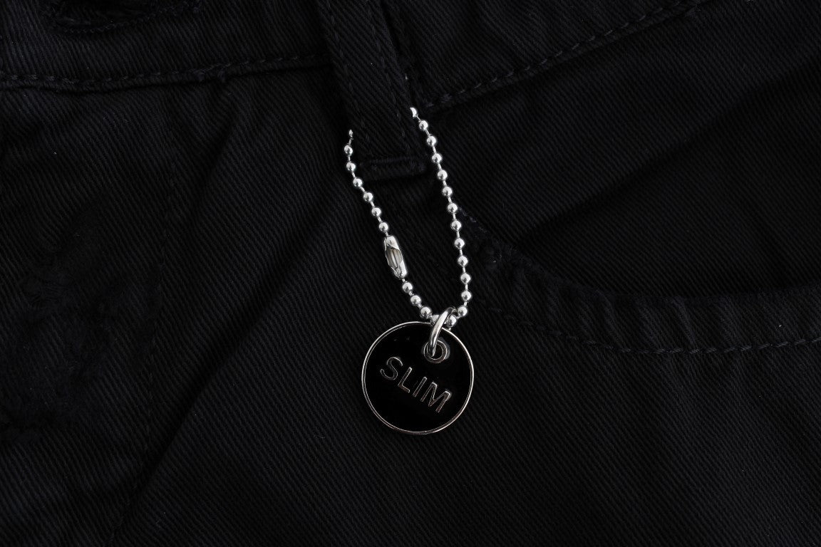 Fitting: Slim Fit Color: Black Material: 100% Cotton Fly: Zipper and button Logo details