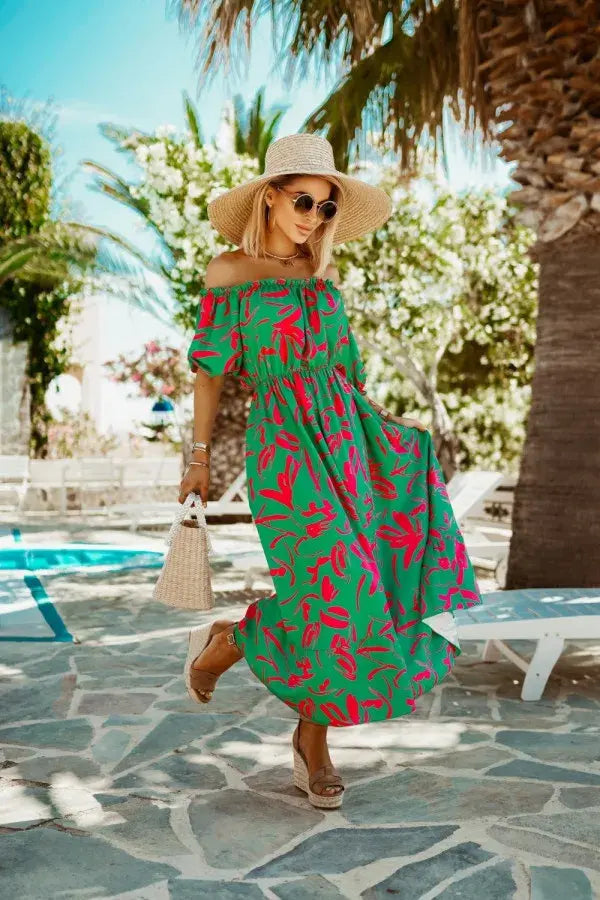 تألقي بإطلالة رائعة مع فستان طويل بأكمام مكشوفة الكتفين ينضح بالأناقة والرقي. يبرز تصميم الكتفين المكشوفين جمال عظام الترقوة والكتفين، مما يخلق صورة ظلية مذهلة مثالية لأي مناسبة خاصة. سواء كنتِ تحضرين حفل زفاف أو حفلًا رسميًا أو عشاءً رومانسيًا، فإن هذا الفستان يضمن لكِ أن تكوني مركز الاهتمام.
