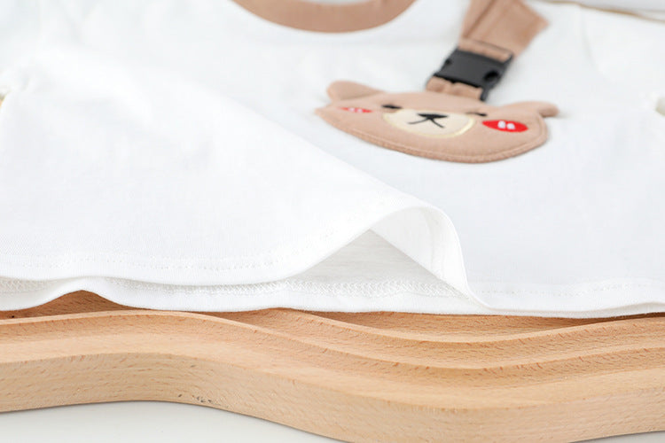 Brighten up your little one's day with this adorable Short-sleeved Cartoon Animal Two-piece Set. Featuring a lightweight short-sleeved shirt and comfortable matching pants, this set is designed in a trendy Korean style that blends fun and function. Made from soft cotton fabric, it's perfect for everyday play and outdoors.
