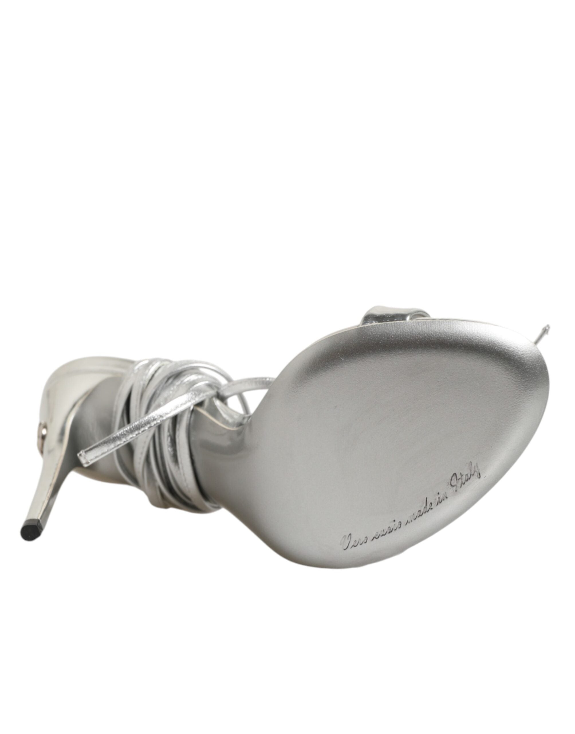 يجسد هذا الحذاء الأناقة الراقية والجاذبية العصرية. مصنوع من الفضة المعدنية، ويتميز بتفاصيل رفيعة من الأشرطة التي تلتف برشاقة حول القدم، مما يخلق مظهرًا أنيقًا وراقيًا. يضيف الكعب العالي الرفيع طولًا وجاذبية، مما يجعله الخيار المثالي للمناسبات المسائية والحفلات أو أي مناسبة خاصة تتطلب لمسة من الفخامة.