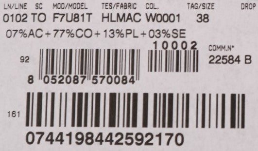 الخامة: 77٪ قطن، 13٪ بوليستر، 7٪ أسيتات