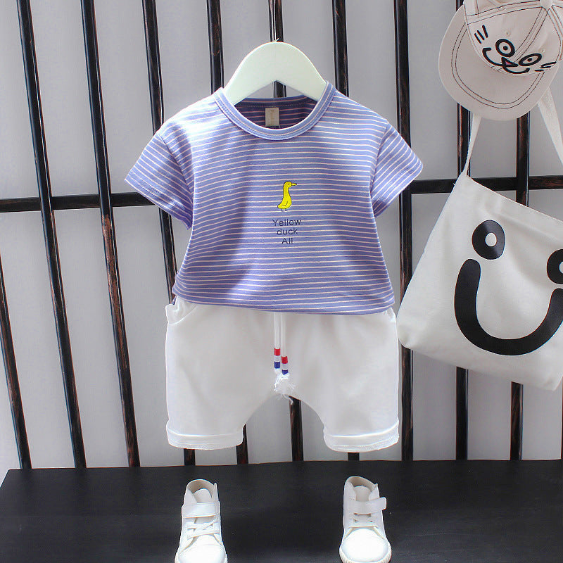 Style13 short-sleeved suit striped duck purple