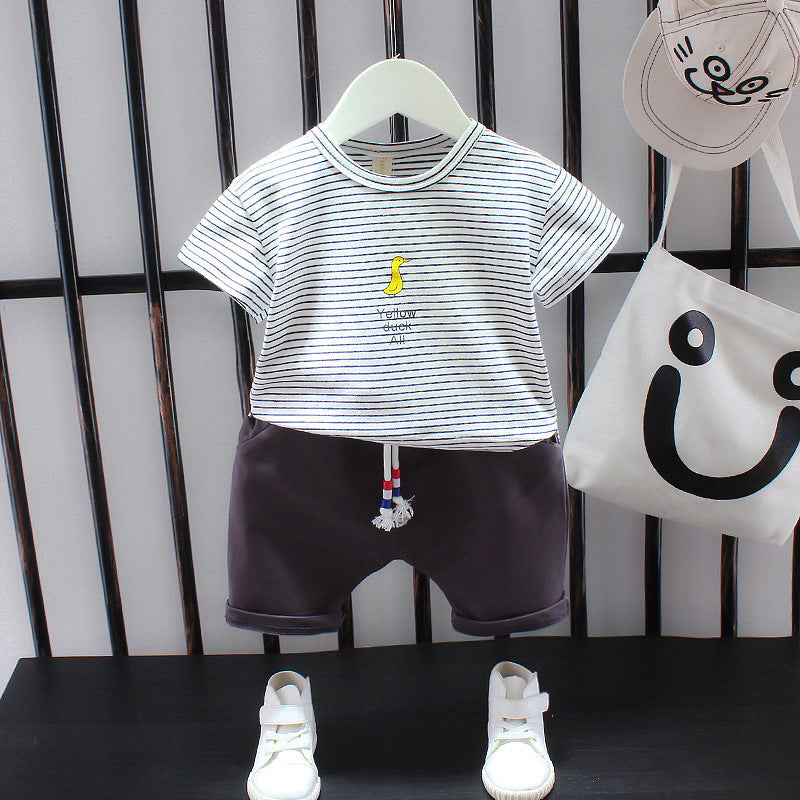 Style15 short-sleeved suit striped duck gray