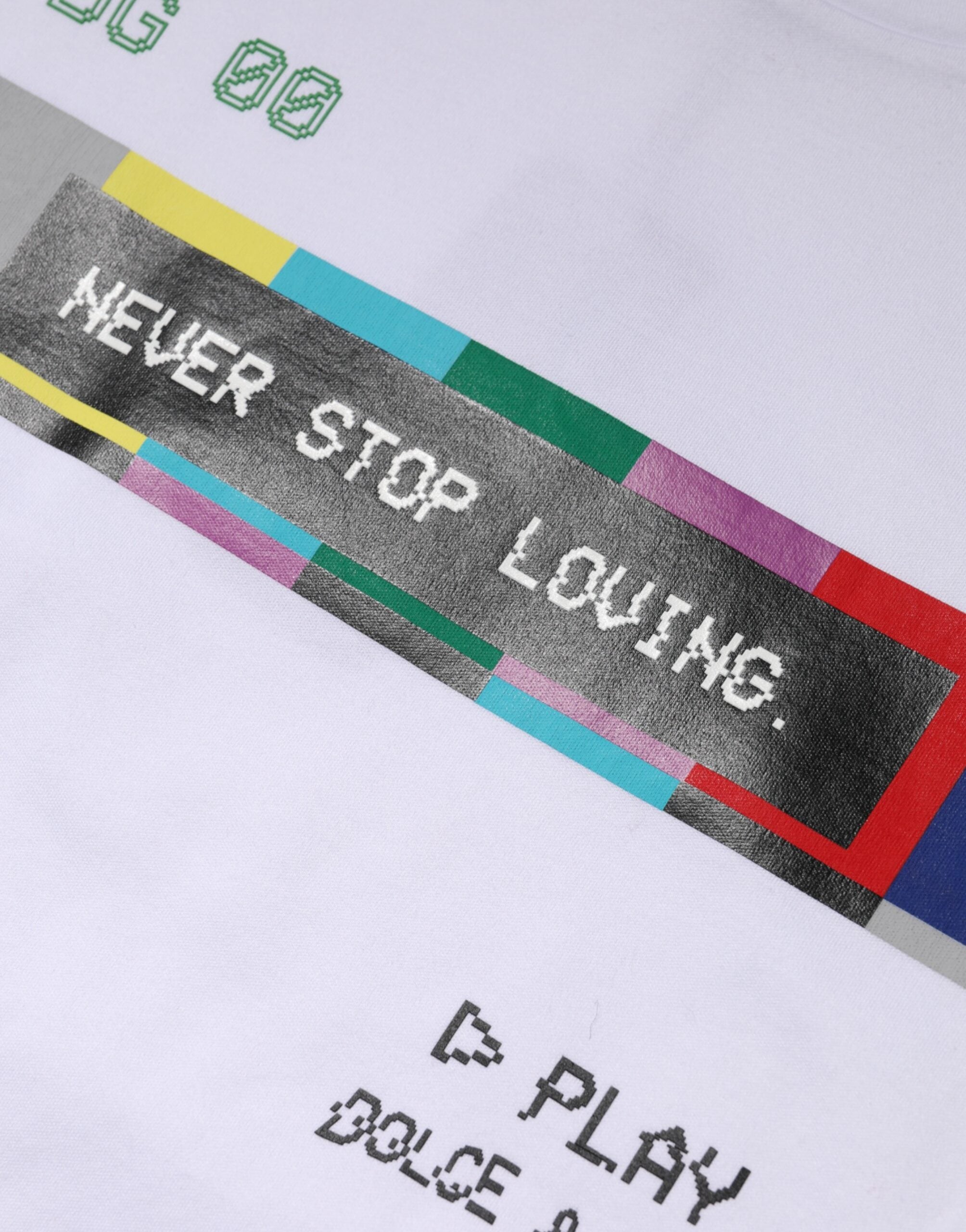 Gorgeous brand new, 100% Authentic Dolce & Gabbana crew neck t-shirt crafted from cotton with NEVER SROP LOVING PLAY DG logo print. Model: Crew neck t-shirt Material: 100% Cotton Color: White Logo details Made in Italy Great fitting and comfort
