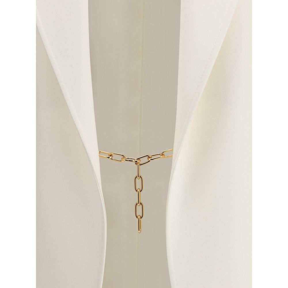 Gabriela Hearst’s Epona Blazer is a piece of structured, contemporary elegance. Featuring refined peaked lapels, it is distinguished by an adjustable waistband embellished with a gold chain, which can be hooked at the waist to create a defined and feminine hourglass silhouette. Crafted with the house’s signature attention to detail and quality, this blazer combines form and function, becoming a perfect ally for sophisticated and versatile looks.