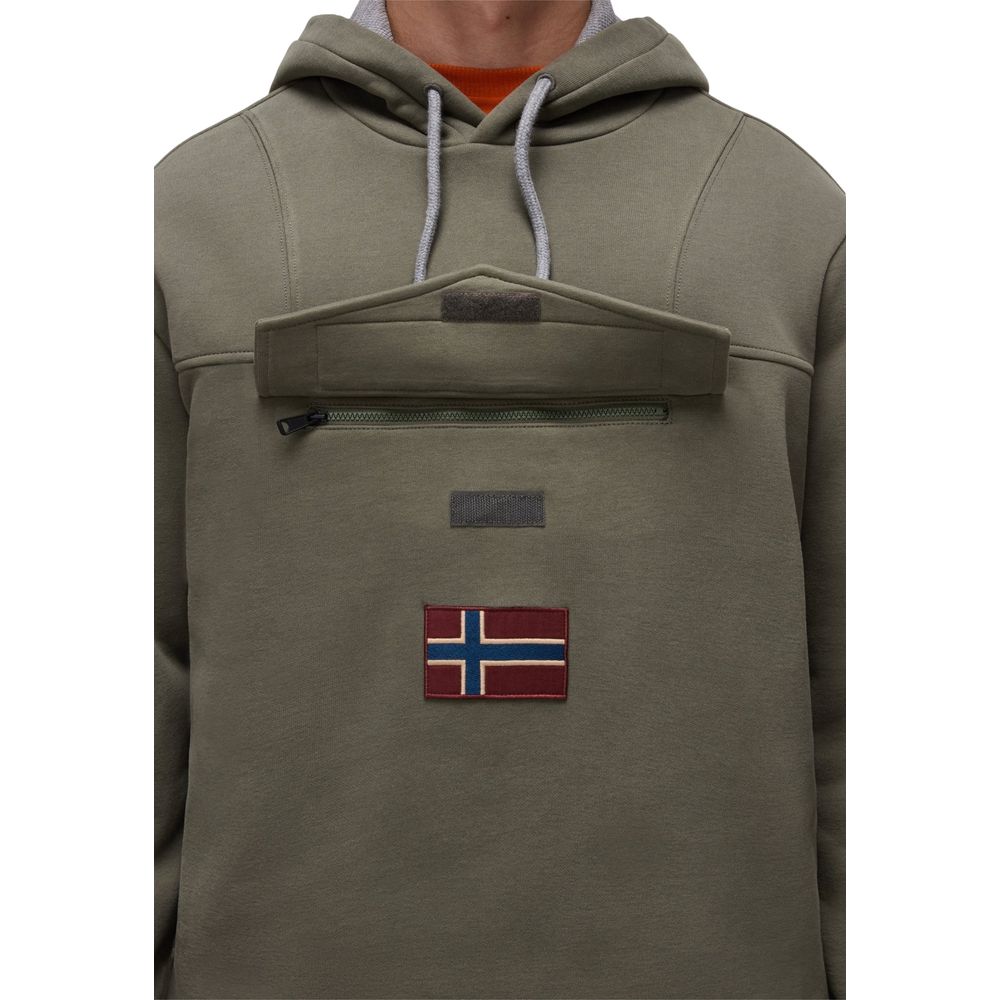 The Napapijri BURGEE WINT 4 NP0A892T men’s hoodie is an iconic piece that combines style and comfort. Made from a soft blend of 90% cotton and 10% polyester, it ensures a warm and comfortable fit, perfect for cooler days. The distinctive Napapijri logo on the chest and the Norwegian flag add a modern, recognizable touch. The adjustable hood with drawstrings and the large front kangaroo pocket offer practicality and functionality, making this hoodie ideal for leisure, city strolls, or outdoor activities.