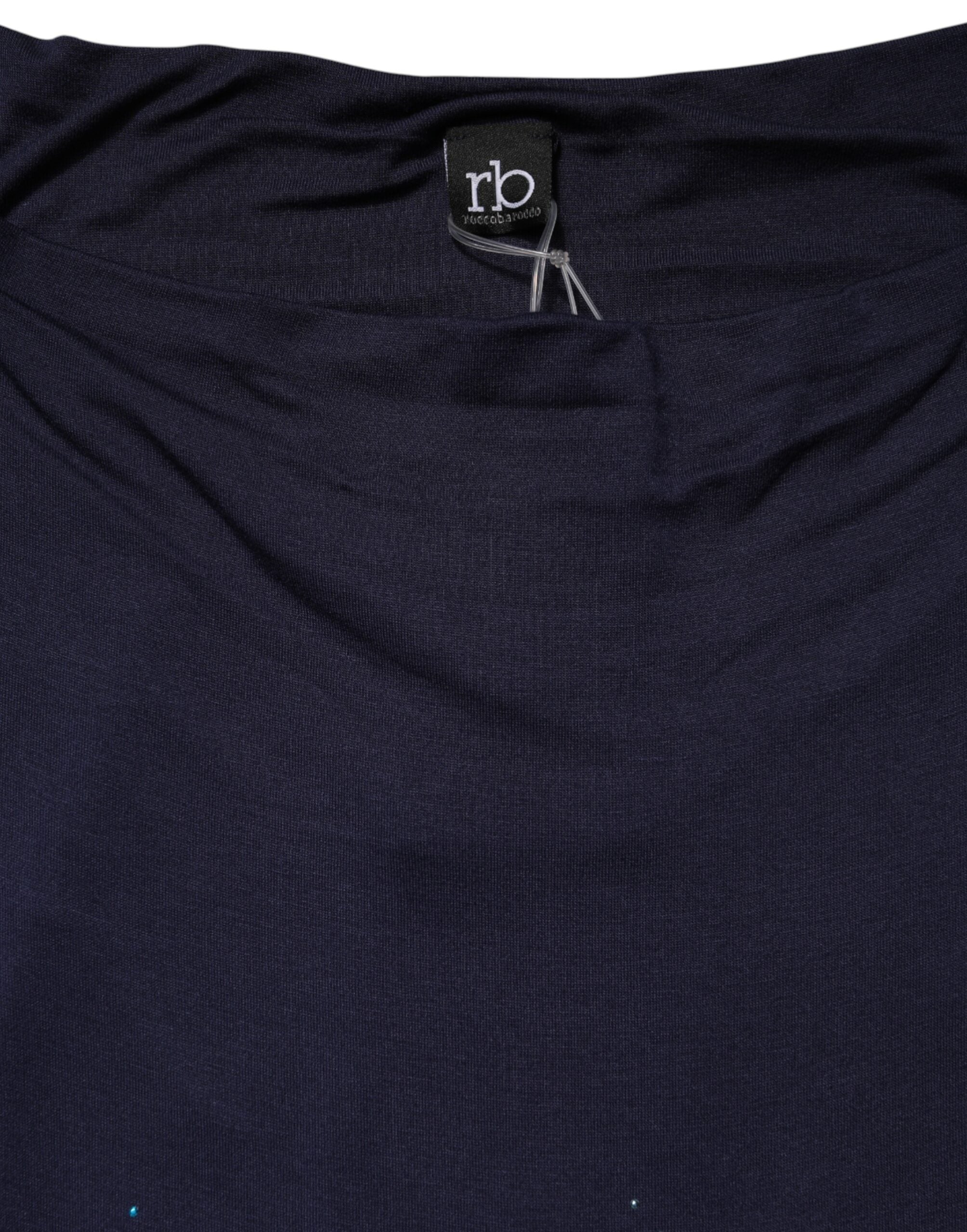 blue mini dress, featuring a glamorous off-shoulder neckline. Adorned with delicate embellishments, it adds sparkle and sophistication to a playful, chic silhouette. The mini length highlights a youthful, flirty style, perfect for parties, evening events, or special occasions. A standout piece that blends contemporary design with refined Italian craftsmanship.