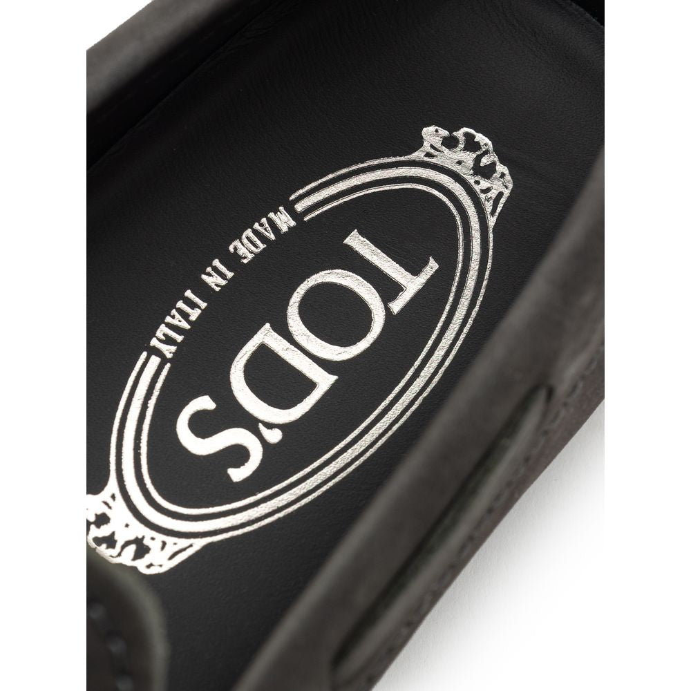 Men's moccasin in anthracite nubuck leather by Tod's combines elegance and Italian craftsmanship. Featuring a Gommino sole for maximum grip and a decorative lace, it is ideal for both formal and casual outfits. Perfect for those who seek timeless style and quality.