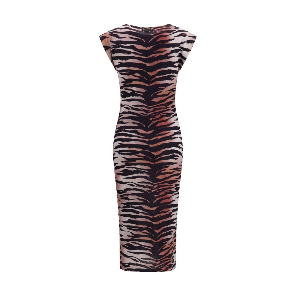 The Tiger print Dress with short sleeves by Pinko delivers a bold and contemporary aesthetic. The tiger motif enhances the design with strong visual impact, defining its confident character. Short sleeves complete the balanced silhouette, making this Dress by Pinko a distinctive and dynamic piece for standout looks.