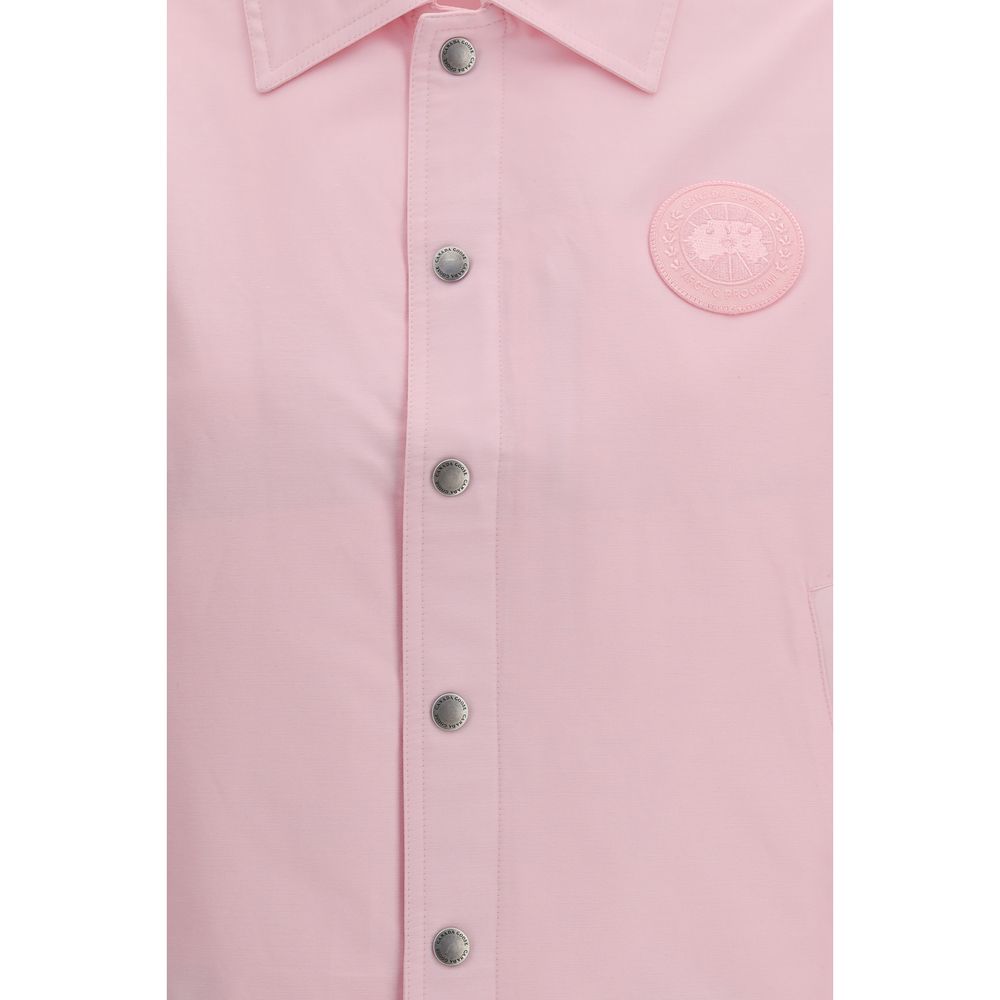 The Regency Jacket with tonal label by Canada Goose reinterprets the traditional coach jacket with a modern approach. Crafted from a cotton-nylon blend, it features a point collar, snap-button front closure and dropped shoulders that enhance its relaxed sporty silhouette. A mesh lining improves breathability, while the internal adjustable drawcord at the hem allows for a customizable fit. Elasticized hems, two zippered hand pockets and one interior zip pocket complete the design, combining functionality with effortless style.