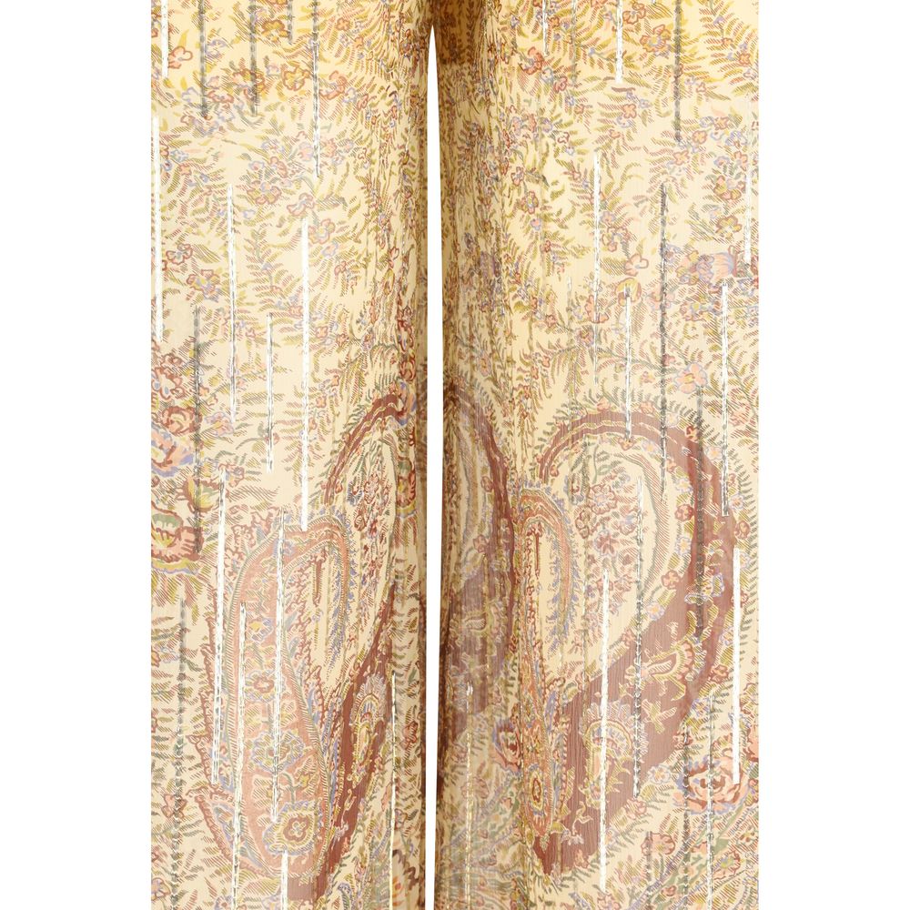 The silk georgette Pants express fluid by Valentino, refined elegance, highlighted by a floral Paisley print with strong decorative appeal. The semi-sheer fabric, enhanced with subtle lurex details, moves lightly with the body, while the fluid leg creates an effortless, feminine silhouette. An elasticated waistband ensures comfort, complemented by two side pockets and two rear welt pockets, balancing sophistication with everyday wearability.