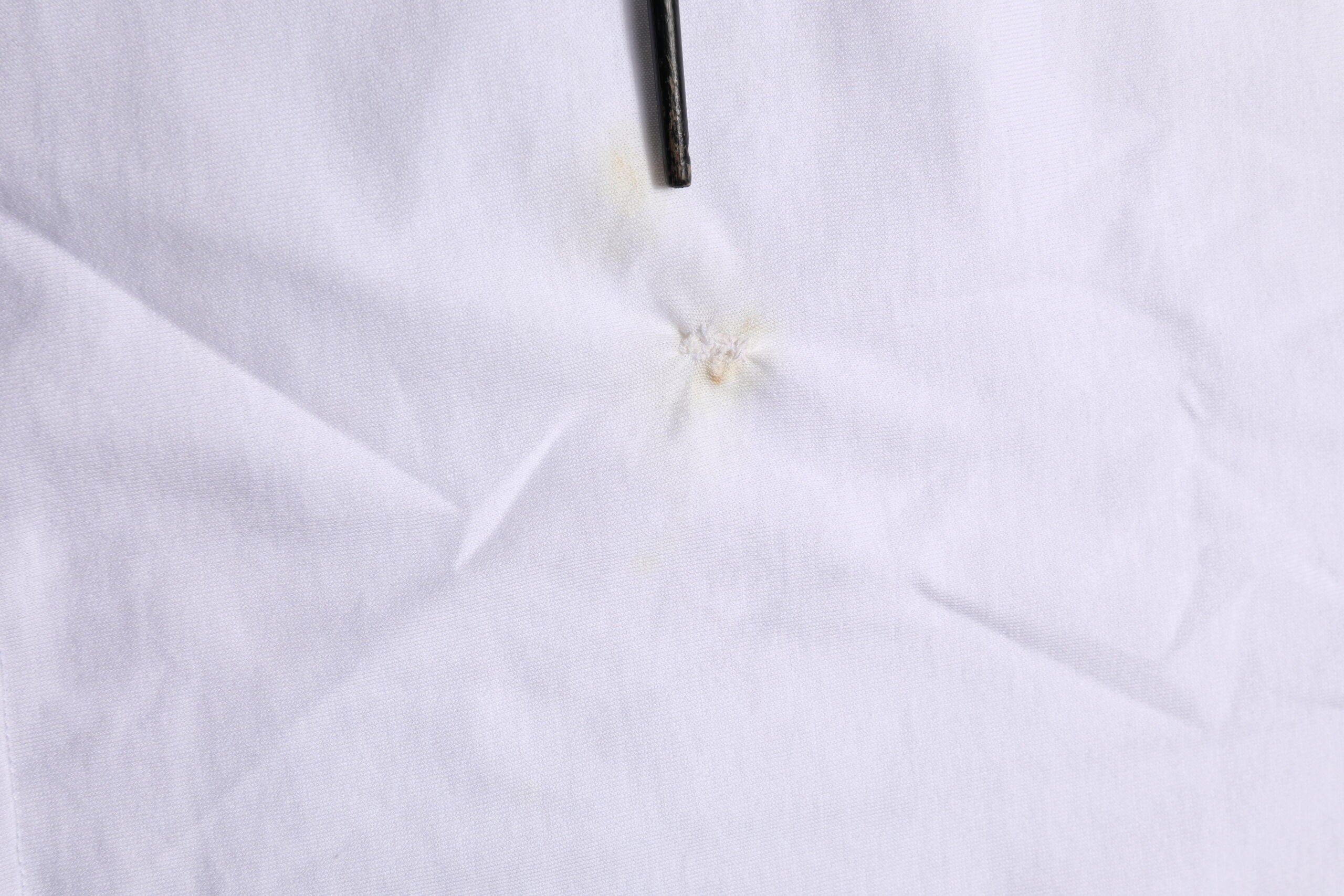 This item has a minor defect, there are repaired holes on the front side and stains on the front and back side (see pictures for details).