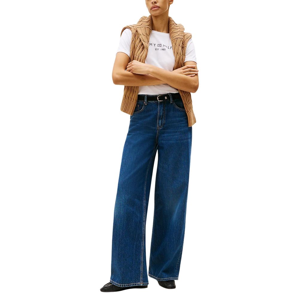 The Tommy Hilfiger women’s REG CORP LOGO C-NK S t-shirt (model WW0WW40276) combines casual style with sustainability. Made from 100% regenerated cotton, this short-sleeved t-shirt offers exceptional comfort and softness, with a regular fit that flatters the female silhouette. The minimalist design is enhanced by the iconic Tommy Hilfiger logo on the front and a small flag detail on the sleeve, symbols of authenticity and elegance. The classic crew neck makes it a versatile choice for various occasions, from leisure time to more refined outfits. Perfect for those who seek a high-quality, eco-conscious, and always fashionable garment.